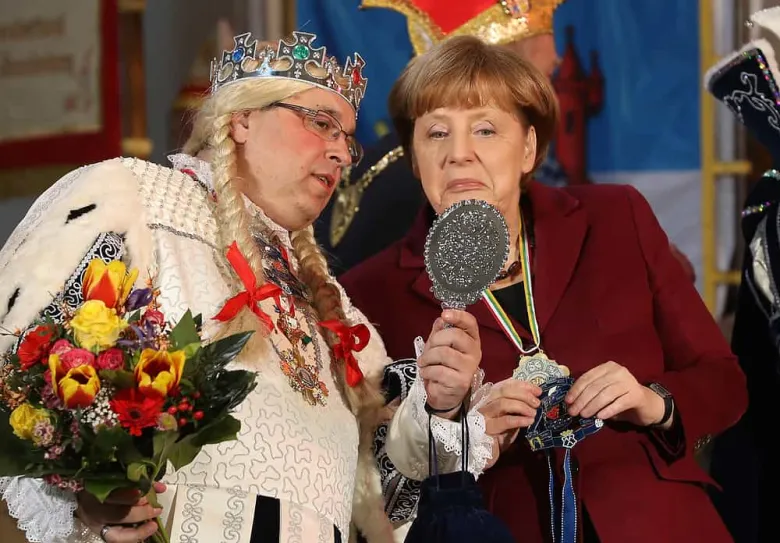 Անցած շաբաթ Գերմանիայում կայացած դիմակահանդեսի մասնակիցների հետ հանդիպման ժամանակ Անգելա Մերկելը ուսումնասիրել է իրեն նվիրած հայելին: