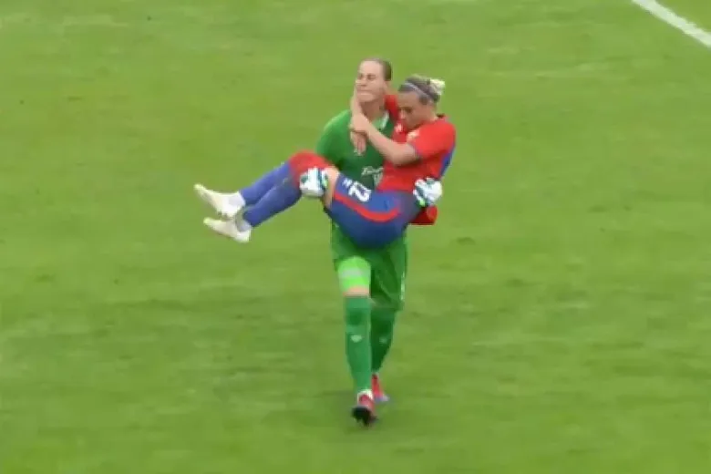 Կին ֆուտբոլիստը ձեռքերի վրա դաշտից դուրս է բերել վնասվածք ստացած խաղընկերուհուն (տեսանյութ)