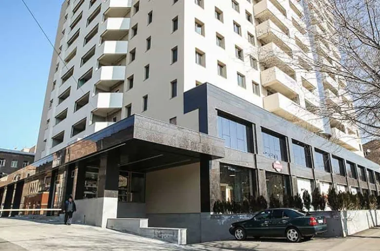 Սա այն շենքն է, որի դիմացի զավթած մայթը երեկ մաքրում էին քաղաքապետարանի աշխատակիցները, որի կառուցապատողը փաստացի տարածքներ էր զավթել նաեւ հարեւանությամբ գտնվող դպրոցից: