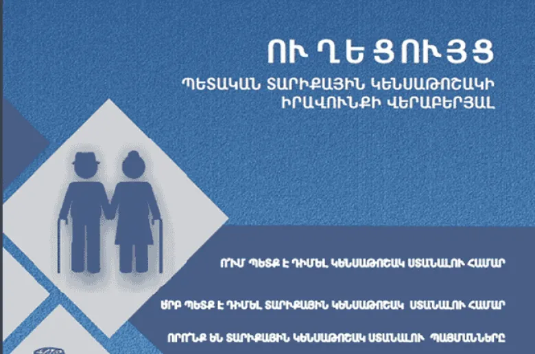 Մարդու իրավունքների պաշտպանը հրապարակել է ուղեցույց պետական տարիքային կենսաթոշակի իրավունքի վերաբերյալ։ USAID-ի աջակցությամբ իրականացվող «Հայաստանում մարդու իրավունքների պաշտպանության խթանում բոլորի համար» ծրագրի շրջանակում պատրաստված ուղեցույցում մանրամասն նշվում են․