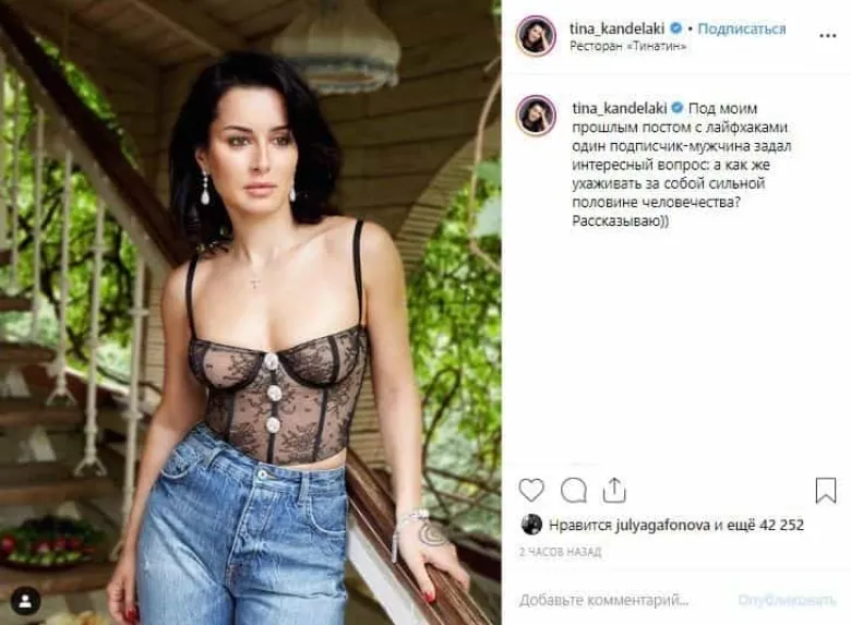 Տղամարդկանց չի կարելի անվանել «Матч ТВ»-ի պրոդյուսեր Թինա Կանդելակիի էջի հաճախակի հյուրը։ Սակայն նա որոշել է տղամարդկանց մի քանի խորհուրդ տալ դեմքի մաշկի խնամքի վերաբերյալ, եւ հենց տղամարդ օգտատերերի ներգրավվելու համար Կանդելակին հրապարակումն ուղեկցել է լուսանկարով, որում սեքսուալ կորսետ է կրում։