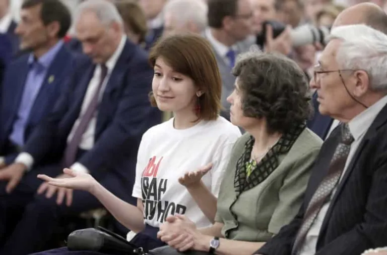 Բողոքի ակցիա Կրեմլում. «Ես/Մենք Իվան Գոլունով ենք» գրությամբ շապիկով աղջիկը 1 ժամ նստել է Պուտինի դիմաց (տեսանյութ)