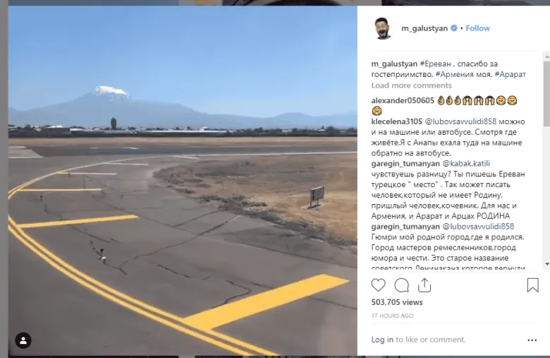 Իմ Հայաստան. Արարատ. Գալուստյանը գրառում է կատարել Ինստագրամում
