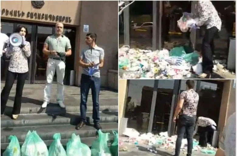 Մի շարք քաղաքացիներ Երևանի Արշակունյաց փողոցից աղբ են բերել Երևանի քաղաքապետարանի դիմաց՝ հանձնելու քաղաքապետարանին: