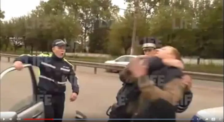 ՌԴ Կիրով քաղաքում վարորդը հարձակվել է ճանապարհային ոստիկանների վրա: 26-ամյա Ալեքսանդրը եղել է անսթափ վիճակում: Ոստիկանները կանգնեցրել են նրա մեքենան։ Ալեքսանդրի ձեռքերին ձեռնաշղթա են անցկացրել, հետո բացել են շղթաները, որպեսզի նա մեքենայից փաստաթղթերը դուրս բերի: Ոստիկանների գործողությունները դուր չեն եկել երիտասարադին և նա հարվածել է նրանցից մեկին: Ոչ ադեկվատ վիճակում գտնվող վարորդին ճանապարհային ոստիկանները միանգամից տապալել են գետնին և նորից դիմել ձեռնաշղթայի օգնությանը: Այս արարքի համար նա արդեն քրեական պատասխանատվության կենթարկվի: