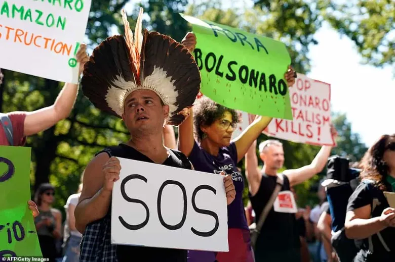 Մեծ Բրիտանիայում ցույցի մասնակիցները հավաքվել են երկրի մայրաքաղաքում գտնվող հյուպատոսության մոտ՝ կոչ անելով Բոլսոնարույին կանխել Ամազոնի արևադարձային անտառների զանգվածային հրդեհները: