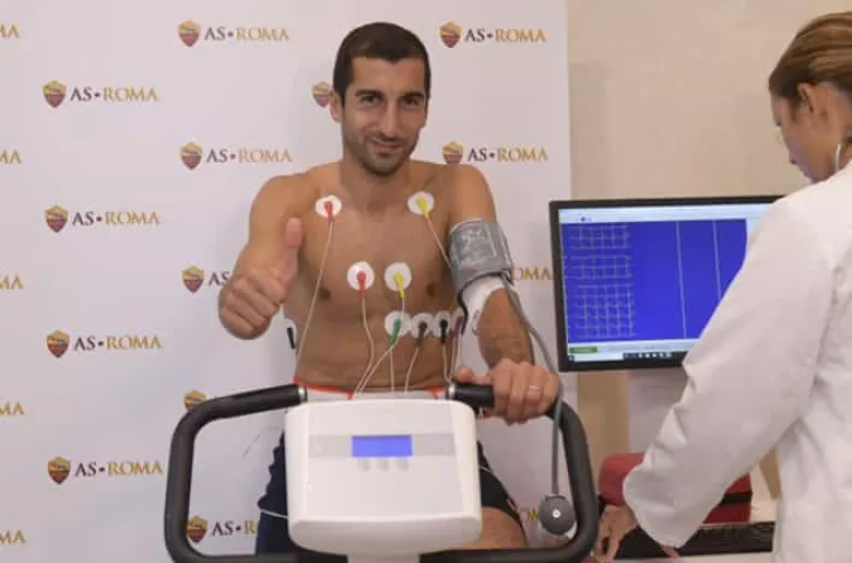Հայաստանի ազգային հավաքականի եւ Լոնդոնի «Արսենալի» 30-ամյա կիսապաշտպան Հենրիխ Մխիթարյանն Իտալիայի մայրաքաղաք Հռոմի «Վիլլա Ստյուարտ» բժշկական կենտրոնում բուժզննում անցավ «Ռոմայի» համար։ Լուսանկարը հրապարակել է հռոմեական ակումբի պաշտոնական թվեթերյան էջը։