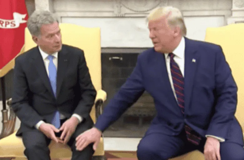 ԱՄՆ նախագահ Դոնալդ Թրամփը Ֆինլանդիայի նախագահի հետ հանդիպման ժամանակ «Ֆինլանդիան երջանիկ երկիր է» խոսքերից հետո ձեռք է տվել գործընկերոջ ոտքին: Սաուլի Նիինիստոյի արձագանքից կարելի է ենթադրել, որ դա նրան դուր չի եկել: