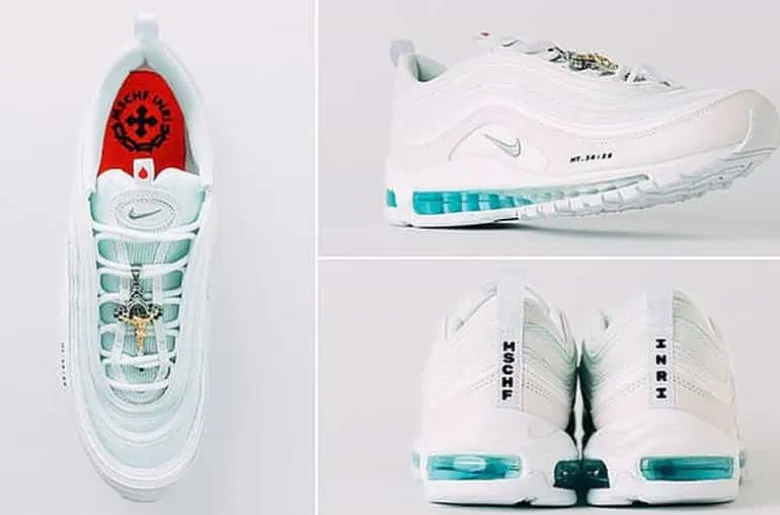 Nike-ի Air Max 97-ի նորացված տարբերակի ներբանների թափանցիկ հատվածը լցված է Հորդանան գետից բերված սուրբ ջրով, որոնց պարզապես գունաներկ են ավելացրել՝ այն ավելի տեսանելի դարձնելու համար: