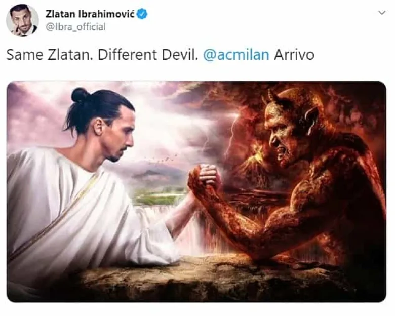 Same Zlatan. Different Devil. @acmilan Arrivo pic.twitter.com/2sU0su3Jtt