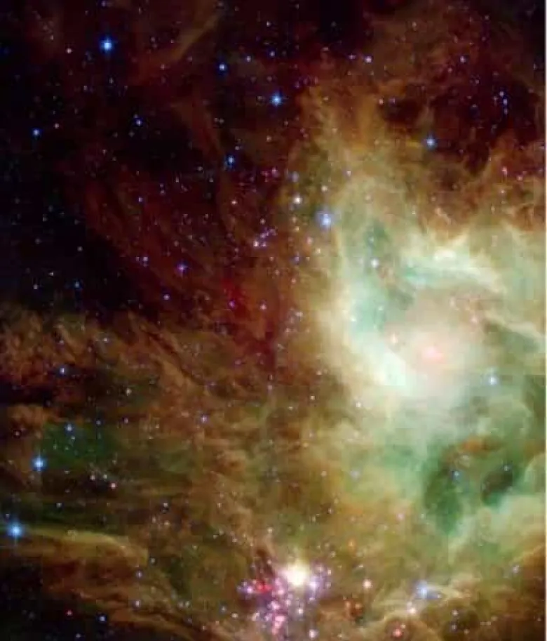 NASA միջազգային տիեզերական գործակալությունը իր կայքում ներկայացրել է աստղային փոշու հաստ շերտի հետեւում նորածին աստղերի կուտակումների «Սուրբծննդյան տոնածառ» անվանումով լուսանկարը։