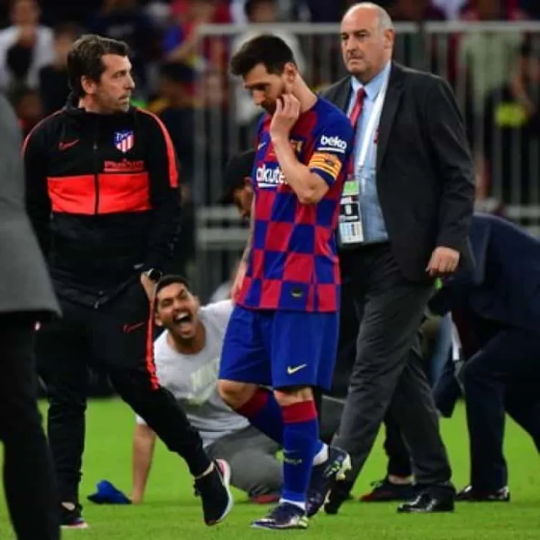 Սաուդյան Արաբիայում տեղի ունեցած ֆուտբոլի Իսպանիայի սուպերգավաթի խաղարկության կիսաեզրափակիչի «Բարսելոնա» - «Աթլետիկո» հանդիպման ավարտից հետո երկրպագուներից մեկին հաջողվել է ներխուժել խաղադաշտ, հասնել կատալոնական թիմի արգենտինացի հարձակվող Լիոնել Մեսիին եւ գրկել նրան։ Անվտանգության աշխատակիցների միջամտությամբ ֆուտբոլասերը հեռացվել է։