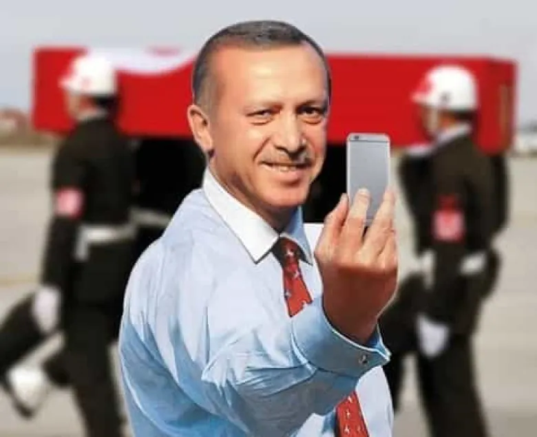 Նշենք, որ ծաղրանկարում պատկերված էր Էրդողանը՝ մահացած թուրք զինվորի դագաղի կողքին սելֆի անելիս։