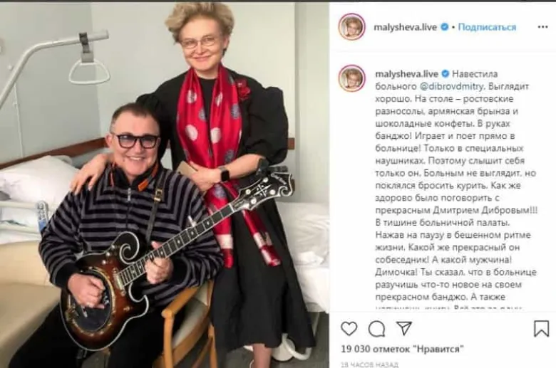 Ելենա Մալիշևան իր ինստագրամյան էջում 60-ամյա Դիբրովի հետ համատեղ լուսանկար է հրապարակել և պատմել հաղորդավարի ինքնազգացողության մասին:
