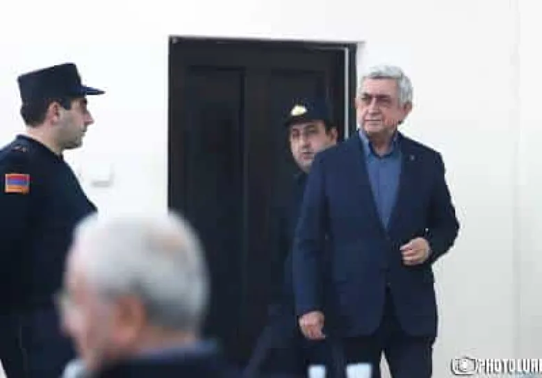 Սակայն դատարան ժամանած Սերժ Սարգսյանը կոչ արեց իր համախոհներին՝ գնալ իրենց գործին։ Մի դեմարշ էլ նա դատարանում արեց՝ դատավորի հարցին պատասխանելիս ոտքի չկանգնեց։ Մեղադրողի դիտարկումին ի պատասխան՝ դատավորը թույլատրելի համարեց, որ նստած պատասխանեն իր հարցերին»: