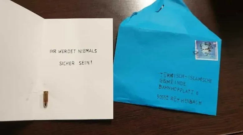 Գերմանիայի Բավարիա երկրամասի Ռյոտենբախ քաղաքում «Կրոնական գործերի թուրքական իսլամական միությանը» կից Ռյոտենբախ մզկիթ են ուղարկել մի ծրար, որում եղել է ատրճանակի փամփուշտ և սպառնալից նամակ։ Այս մասին տեղեկացնում է Ermenihaber-ը։