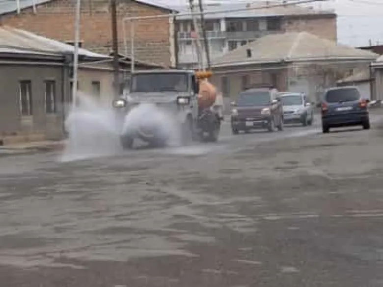 Էջմիածնում քլորաջրով մաքրվում են թաղամասերը, փողոցներն ու մայթերը