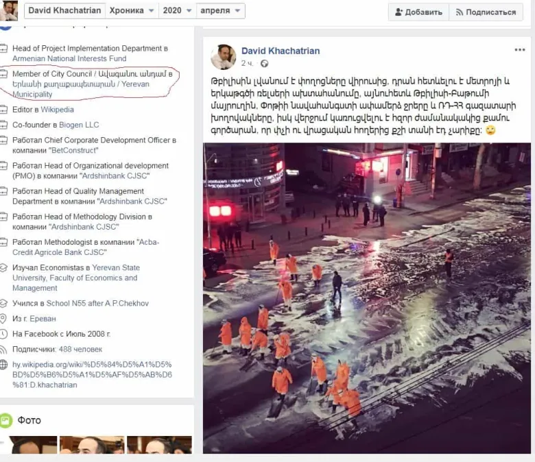 Ավագանու «Իմ քայլը» խմբակցության անդամը ծաղրել է Թբիլիսիի փողոցներն ախտահանողներին, ապա հեռացրել գրառումը