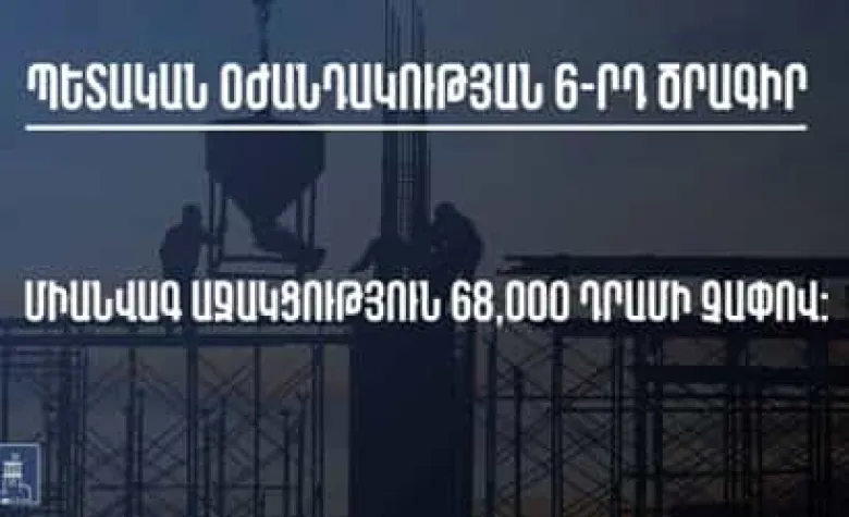 Պետական օժանդակության 6-րդ ծրագրով քաղաքացիներին կտրվի 68․000 դրամ միանվագ օժանդակություն