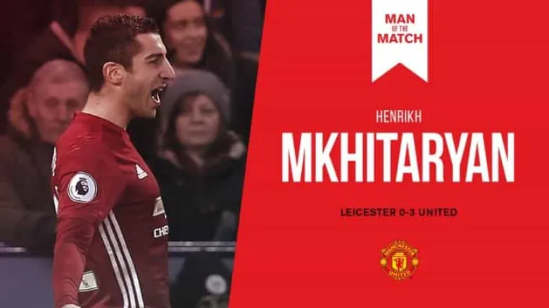 «Մանչեսթեր Յունայթեդի» եւ Հայաստանի հավաքականի կիսապաշտպան Հենրիխ Մխիթարյանը անգլիական ակումբի պաշտոնական թվիթերյան էջում անցկացված քվեարկության արդյունքում ձայների 83 տոկոսով ճանաչվել է «Լեսթեր Սիթիի» դեմ Անգլիայի առաջնության 24-րդ տուրի հանդիպման լավագույն խաղացող: