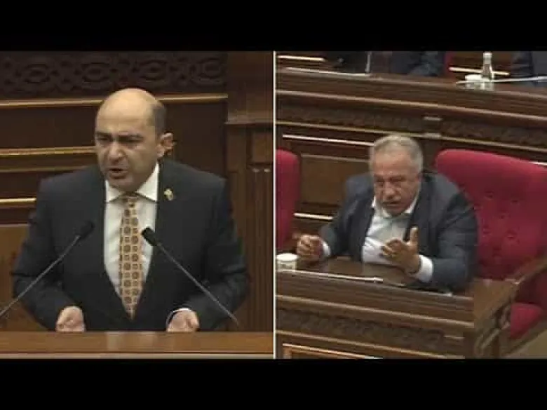 Տեղից «Իմ քայլի» պատգամավոր Սասուն Միքայելյանն արձագանքեց. «Խոսա, բայց մարդավարի խոսա», եւ սկսեց բղավել, սակայն չէր լսվում, թե ինչ է ասում: