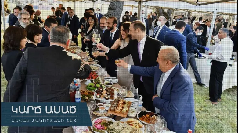 Հայաստանից բավականին մեծ պատվիրակություն էր գնացել Արցախ՝ նախագահի երդմնակալության արարողությանը։ Պաշտոնական մասից հետո, որտեղ, ի դեպ, դարձյալ սոցիալական հեռավորություն ասծը 10 սանտիմետր էր, հայտնվում է լուսանկար, որ էս մարդիկ փարթի են անում։ Մարդը ընդամենը երկու օր առաջ ուղիղ եթեր էր մտել ու հայտարարում էր, թե Հայաստանում քաղաքացիները չունեն սոցիալական պատասխանատվության զգացում, մուննաթ էր գալիս, մեզ էր մեղադրում կորոնավիրուսի տարածման մեջ, կարելի էր մտածել, թե մենք ենք Սյունիքում միտինգ արել կորոնավիրուսի պայմաններում։ Դրանից մեկ օր հետո մարդիկ բողոքի ցույց էին անում, հեռացրին ու տուգանեցին, թե՝ սոցիալական հեռավորություն և այլն։ Փաշինյանն ինքը եթերում հայտարարում էր՝ սաղիդ տուգանելու են, հետո չասեք՝ աղքատություն, փող չկա։ Մարդկանց ծնունդ կամ թաղում աելու համար տուգանողներ, դուք ինչո՞վ եք զբաղված։ Ո՞ւմ եք ձեռք առնում։