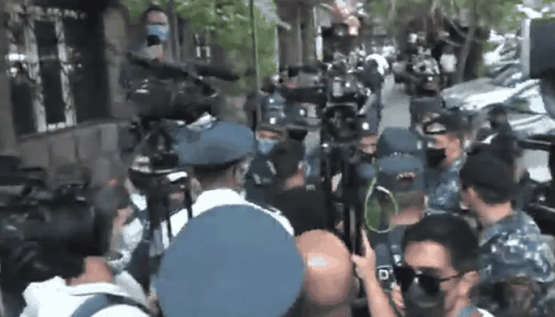 Լարված իրավիճակ՝ ԱԱԾ-ի մոտ. Բերման ենթարկվեց Վահե Էնֆիաջյանի օգնականը (տեսանյութ)