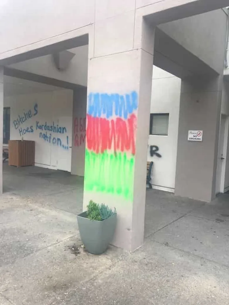 Հայկական հաստատությունների պատերին կարելի է տեսնել ադրբեջանական դրոշը։