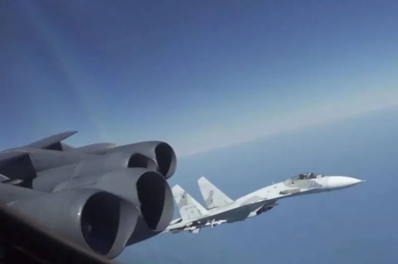 Համացանցում տեսանյութ է հայտնվել, որում պատկերված է ռուսական Սու-27 կործանիչի կողմից ամերիկյան В-52Н ռմբակոծիչի ուղեկցումը: