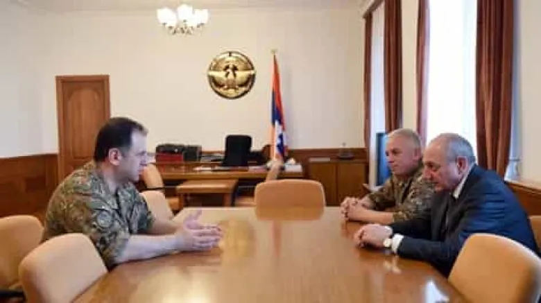 Հանդիպմանը, որին մասնակցում էր ԼՂՀ պաշտպանության նախարար Լեւոն Մնացականյանը, քննարկվել են բանակաշինությանը եւ այդ ոլորտում հայկական երկու հանրապետությունների համագործակցությանը վերաբերող մի շարք հարցեր: