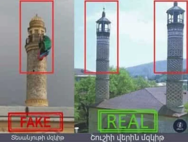 Այն ներկայացվում է որպես ադրբեջանական բանակի՝ Շուշի ներխուժման ապացույց։ Համոզվելու համար, որ գործ ունենք հերթական կեղծիքի հետ՝ բավարար է ընդամենը համեմատել դրանում առկա շինությունը Շուշիի Գյովհար Աղայի վերին մզկիթի հետ։