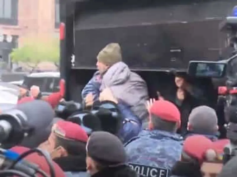 Վարչապետ Նիկոլ Փաշինյանի հրաժարականի պահանջով Տիգրան Մեծ փողոց տանող ճանապարհը փակած քաղաքացիներին Կարմիր բերետավորները բերման ենթարկեցին։