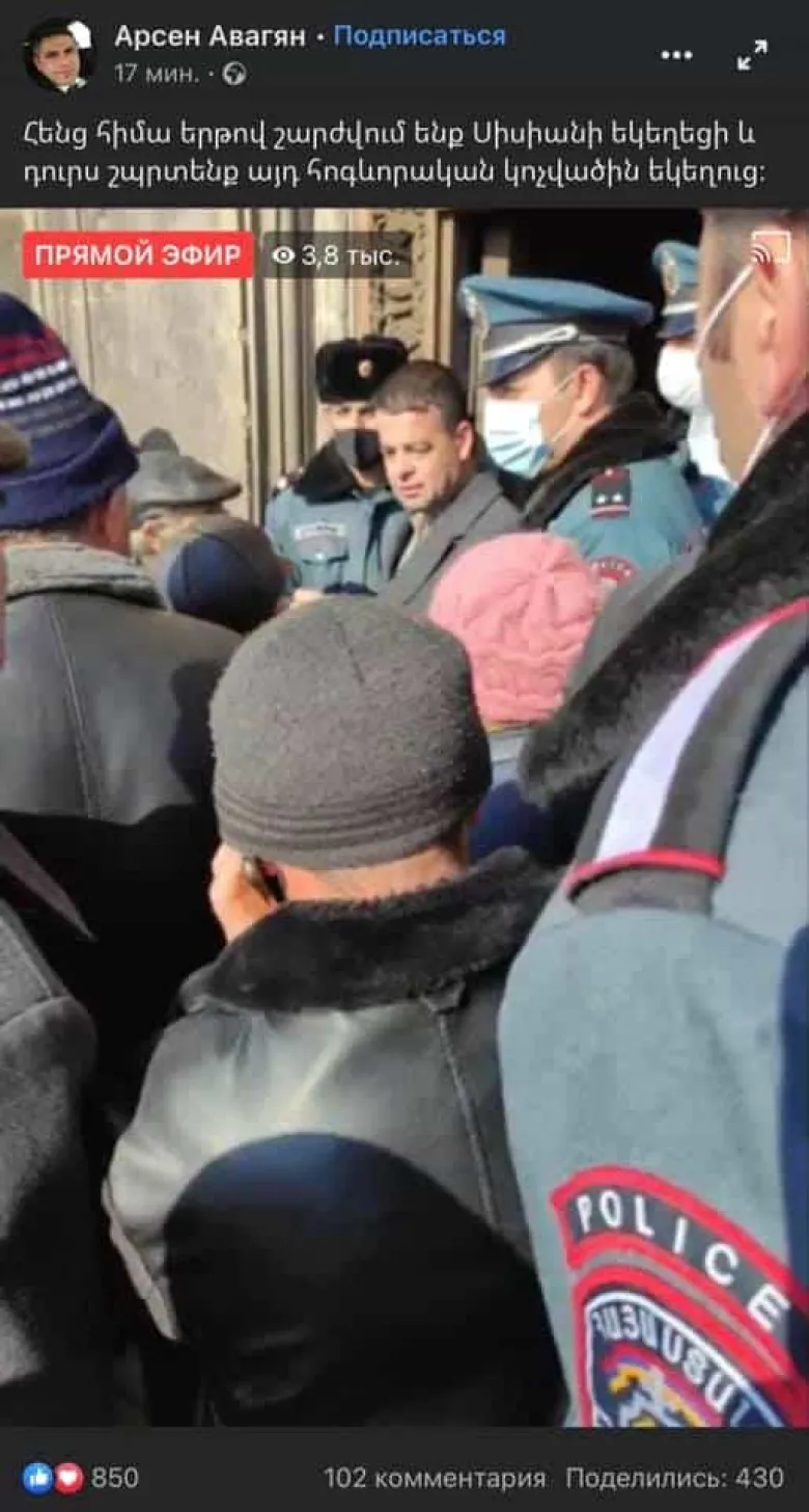 Սիսիանի եկեղեցու հոգևոր հովիվի վրա ուղիղ եթերում հարձակում գործելու կոչ հնչեցնողը «Քաղաքացիական պայմանագիր» կուսակցության անդամ Արսեն Ավագյանն է, ով աշխատում է ՀՀ քաղաքաշինության, տեխնիկական և հրդեհային անվտանգության տեսչական մարմնում: Այսինքն` քահանայի վրա հարձակում պլանավորողը ՀՀ պետական ապարատի ծառայող է: