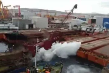 Ստամբուլում ամբարձիչ կռունկն ընկել է ծովը (Տեսանյութ)
