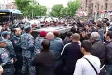 Ոստիկանները գետնին են տապալել եւ բերման են ենթարկում ցուցարարներին