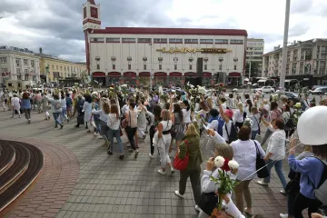 Մինսկում ծաղկի խանութները ծաղիկներ են բաժանում բողոքի ակցիայի մասնակիցներին. (տե...