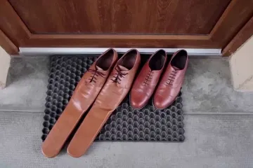 Ռումինացի կոշկակարը քարոզում է սոցիալական հեռավորությունը օրիգինալ կոշիկների միջ...