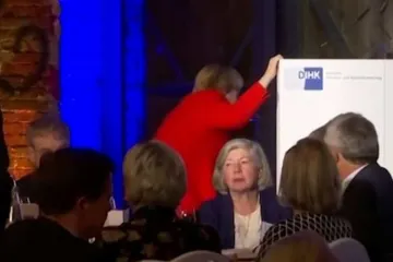 Անգելա Մերկելը սայթաքել է բեմ բարձրանալիս (տեսանյութ)