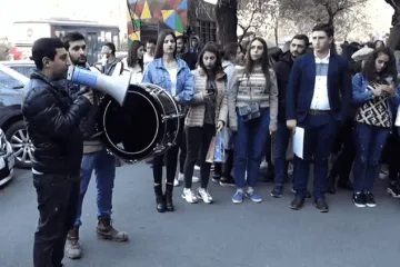 Արայիկ Հարությունյանի հրաժարականը պահանջող ԵՊՀ ուսանողները երթով շարժվում են այլ...