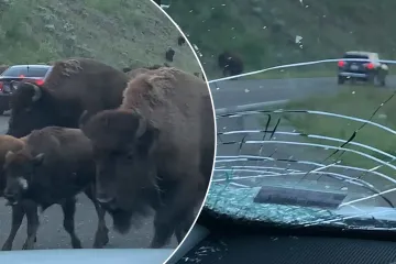 Ավտոմեքենաների վրա բիզոնների զանգվածային «հարձակման» տեսանյութը
