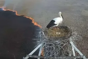 Հերոս հայր-արագիլը հրդեհի ժամանակ հոգում է ապագա սերնդի մասին (տեսանյութ)