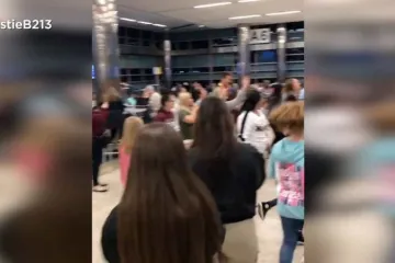 Ավիաընկերության աշխատակիցը պարել է հետաձգված չվերթի ուղեւորների հետ (Տեսանյութ)