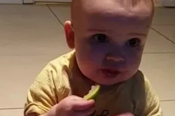 Փոքրիկ երեխան առաջին անգամ փորձում է կիտրոն