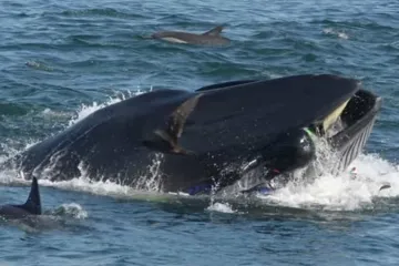 Ինչպես է կետը կուլ տալիս, հետո օվկիանոս «վերադարձնում» սուզորդին (տեսանյութ)