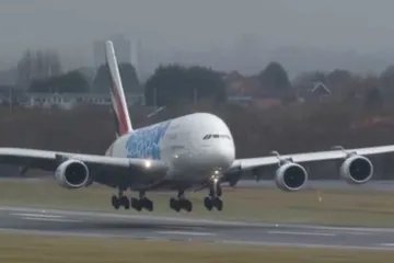Աշխարհի ամենամեծ ինքնաթիռի՝ ուժեղ քամու ժամանակ կատարած վայրէջքը (տեսանյութ)