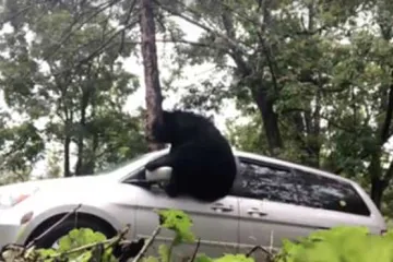 Արջը կոտրել է Նիկոլի մեքենայի ապակին եւ փախել (Տեսանյութ)