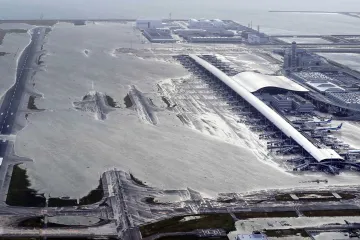 Ինչպես է «Ջեբի» թայֆունը հեղեղում օդանավակայանը (տեսանյութ)