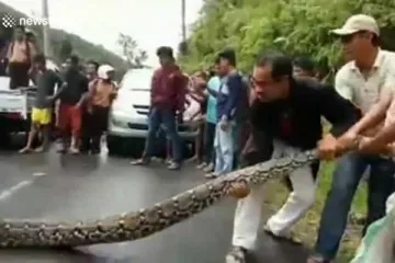 Գյուղացիները փրկել են մեքենայի տակ ընկած 10 մետրանոց պիթոնին (տեսանյութ)