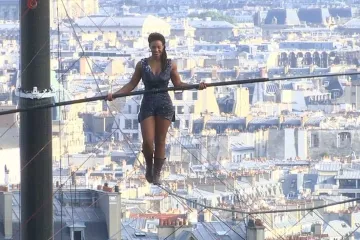 Ֆրանսուհի լարագնացը «զբոսնել» է Մոնմարտրի վրա կապված ճոպանի վրայով