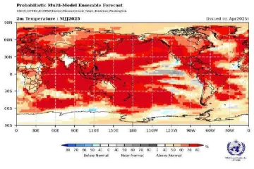 Կանխատեսվում են նորմայից բարձր ջերմաստիճաններ գրեթե բոլոր մայրցամաքային տարածքնե...